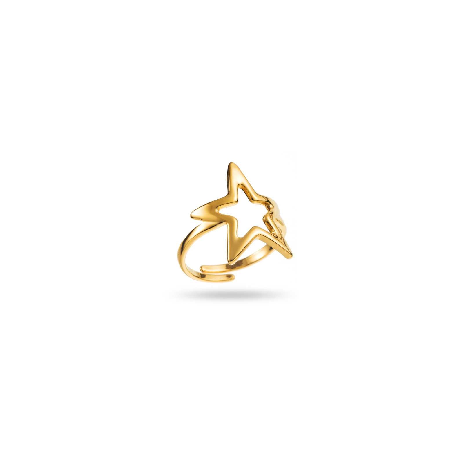 The Stargazer Ring combines elegance with practical versatility. Crafted from stainless steel, this statement piece features an intricate star symbol. The adjustable design allows you to customise the fit by opening and closing the ring to your finger, ensuring comfort. A timeless accessory that effortlessly elevates any outfit.
