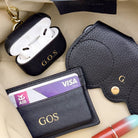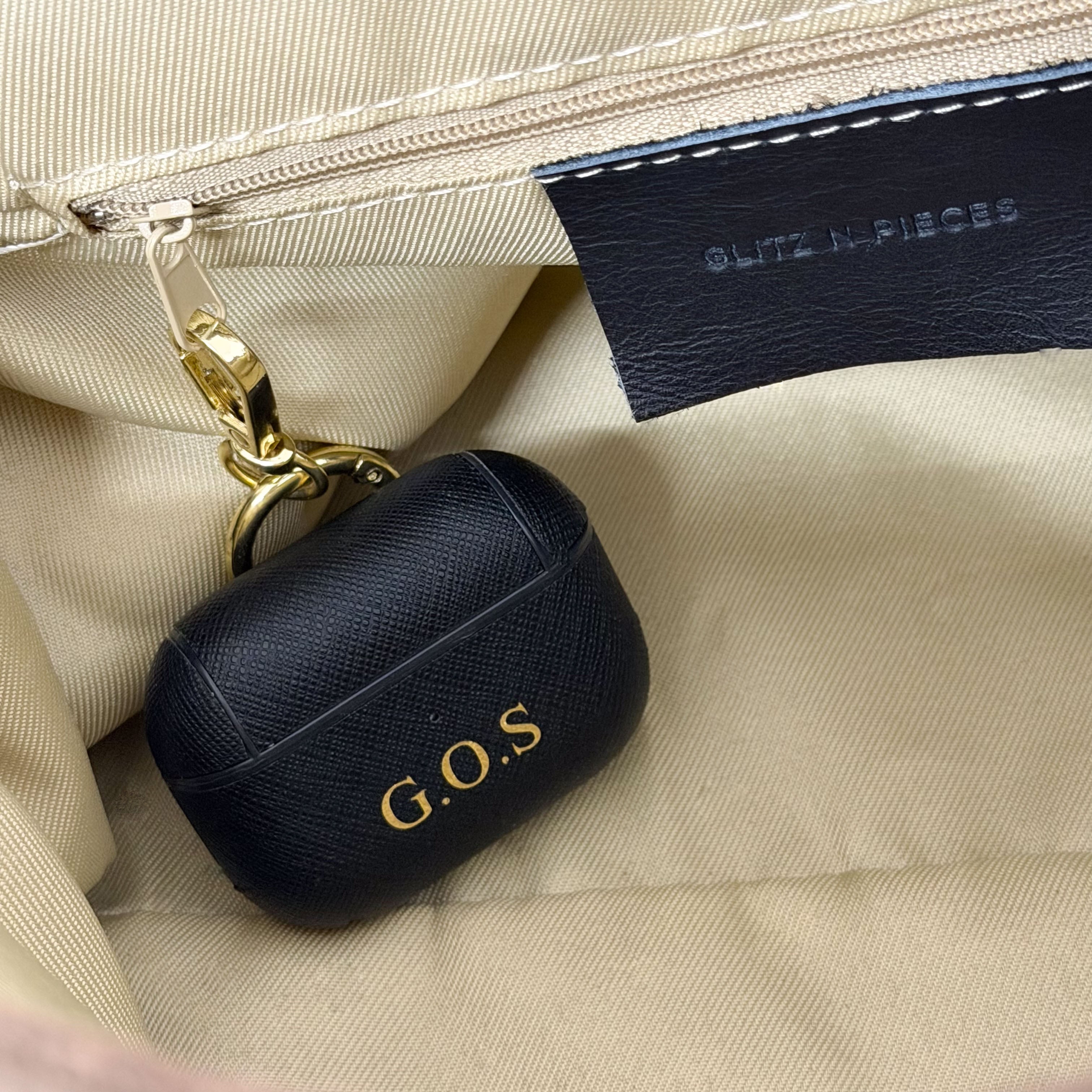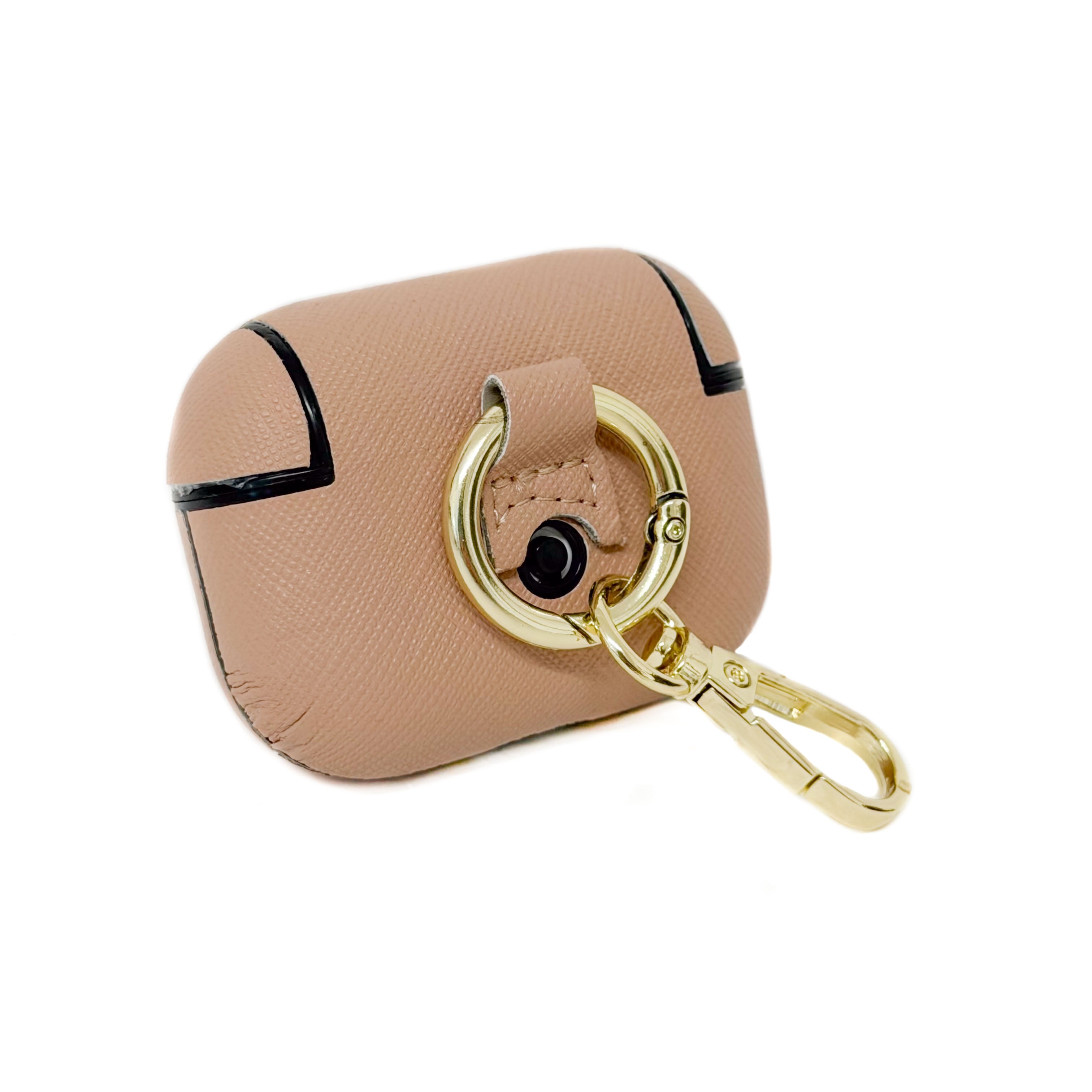 Elevate your everyday essentials with this refined leather AirPods case, crafted in tones that complement any aesthetic. The leather exterior provides both protection and luxury, while the integrated gold keychain ring offers effortless portability. Clip it to your bag, keys, or belt loop for seamless access wherever you go. A sophisticated accessory that transforms your tech into a statement piece.