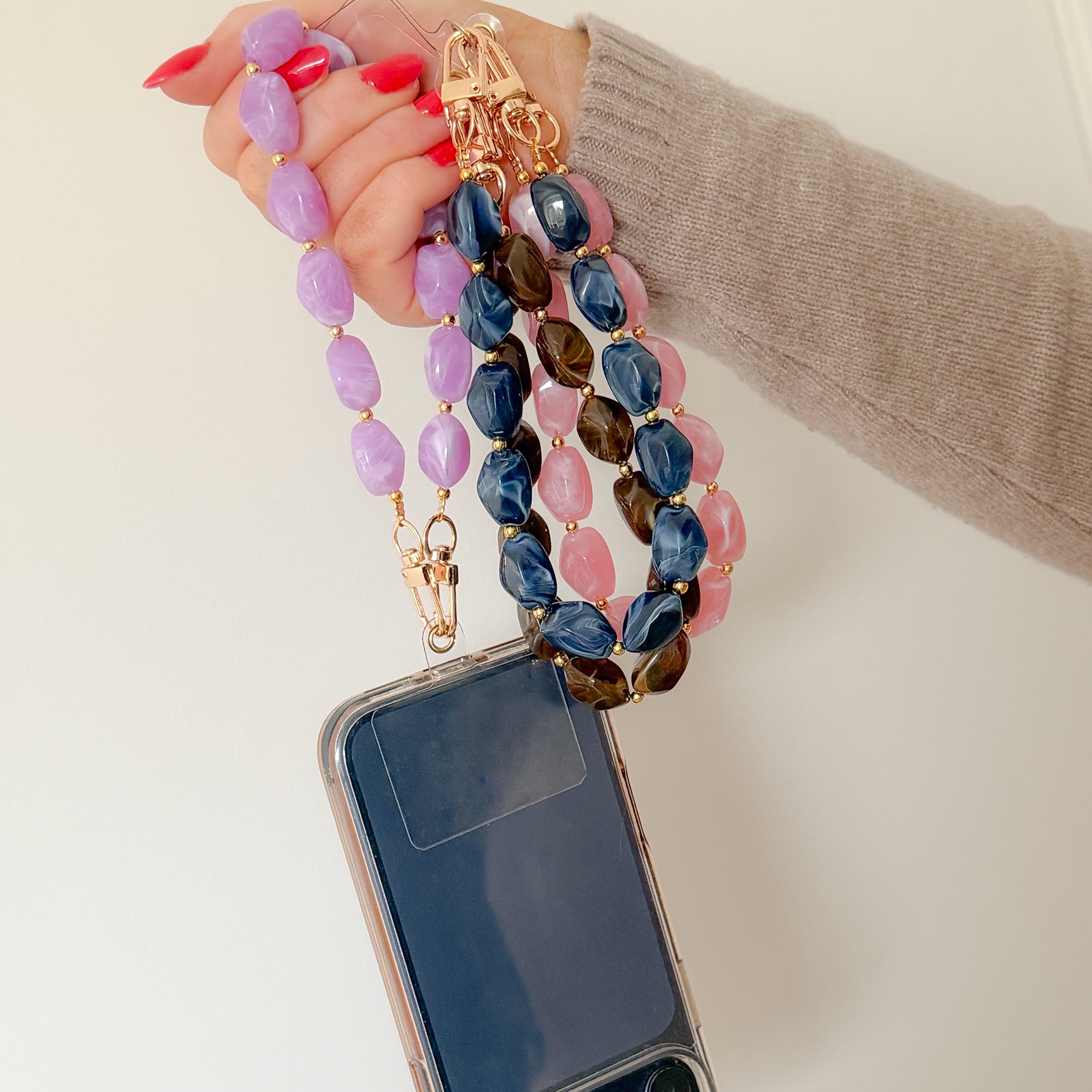 The Aurelia Phone Strap combines elegance with practicality, transforming your smartphone into a stylish accessory. Can also be used as a bag charm when you detach the universal adapter.Designed with refined craftsmanship, this versatile strap offers secure, hands-free carrying by placing on your wrist while adding a touch of sophistication to your daily routine. Whether you're navigating busy streets or attending social events, keep your device within reach without compromising on style. An essential addition to any modern wardrobe.